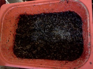 - When left alone for 30-45 days in a bin that contains a moderate amount of water, the final effect of their feeding is a black, crumbly compost that feels structurally similar to crumbly mineral clay soil.