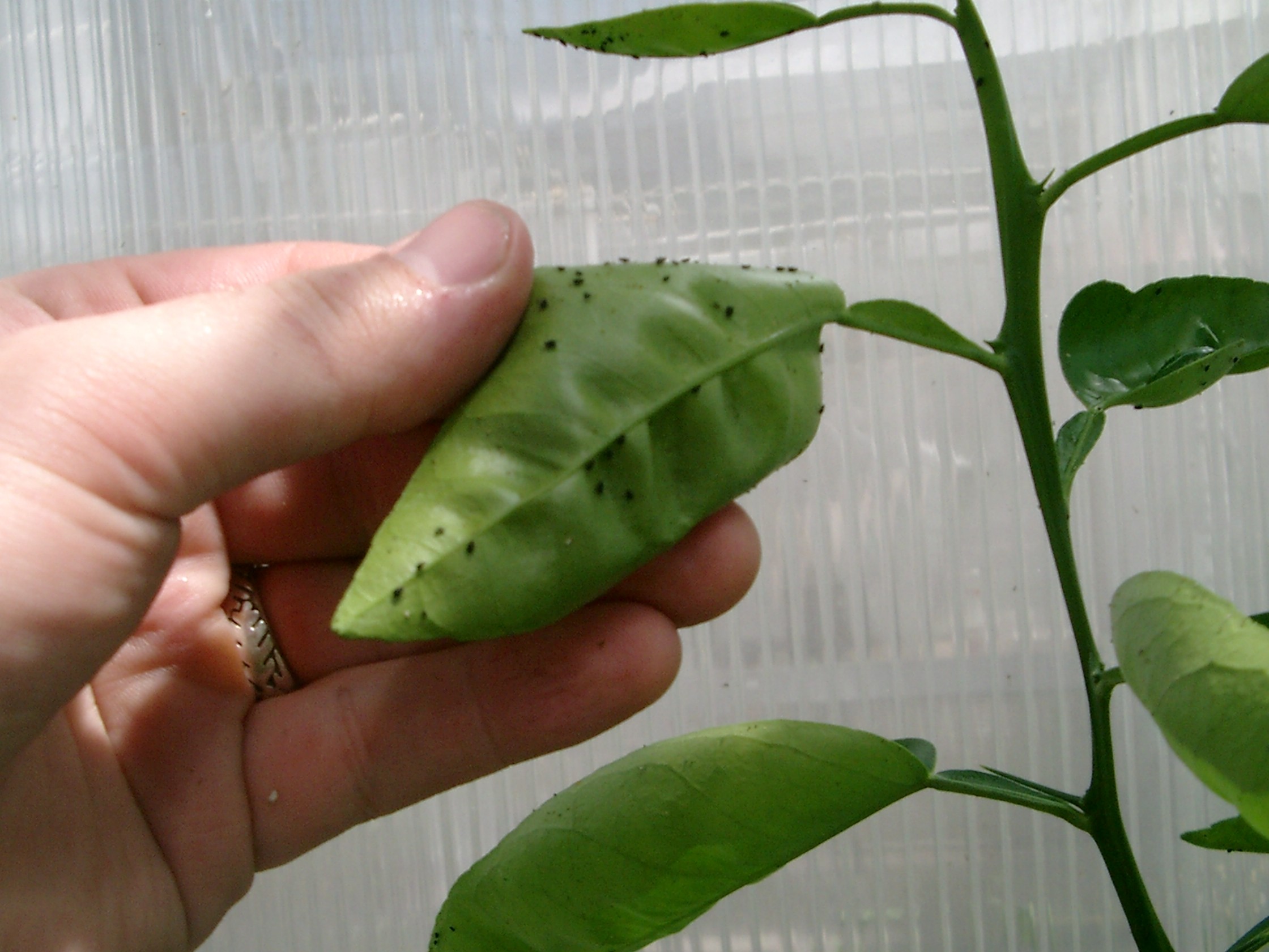 Citrus aphids on n orange tree.