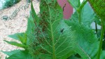This plant also attracts a species of red aphid (Macrosiphum spp.) that also has attracted several aphid predators and parasitic wasps. In fact, even though the aphids colonized nearly the entire underneath of the plant leaves, lacewing and syrphid fly maggots and parasitic wasps were able to control them naturally.